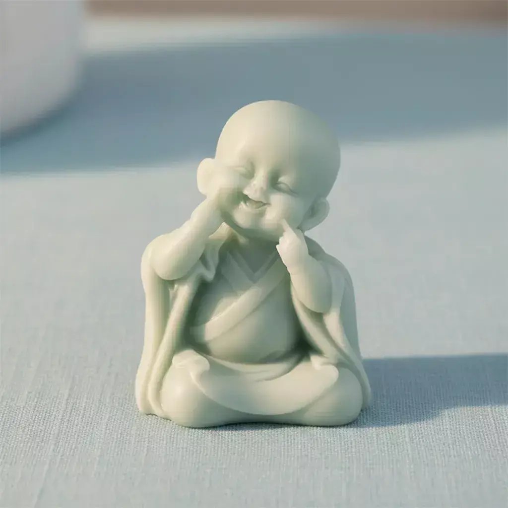Molde buda sentado sonriendo.